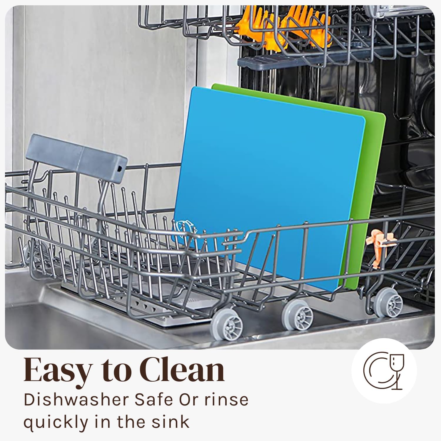 - TEXTURE WAFFLE GRIPPED BOTTOM - PREVENTS SLIPPING ON MOST COUNTER TOPS - Each chopping board has a crosshatch textured back, so the mats will not slip on your counter-top! (Just wet a paper towel and put underneath) Sized for the home chef. Easy to store & maintain.